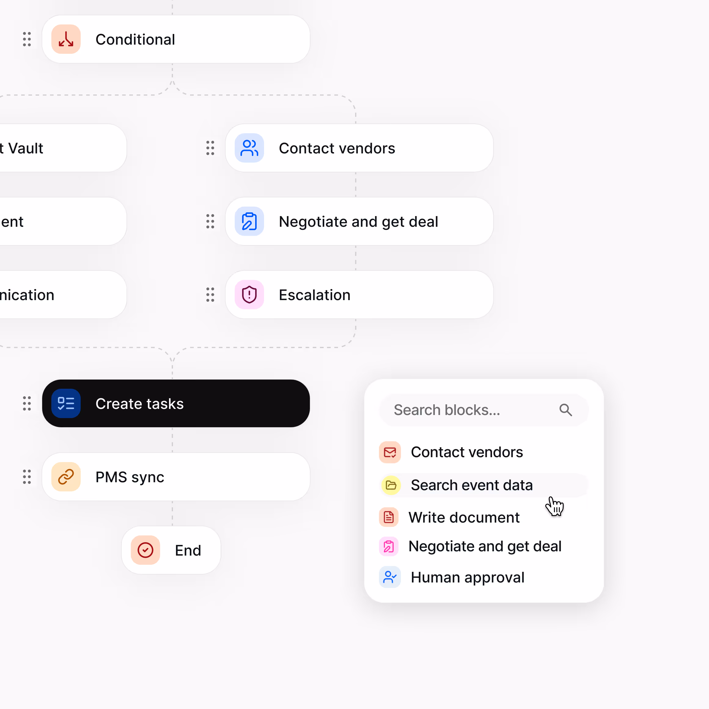 Just drag, drop, and let our AI agents run the playbook, all built from your team's know-how, zero code required.